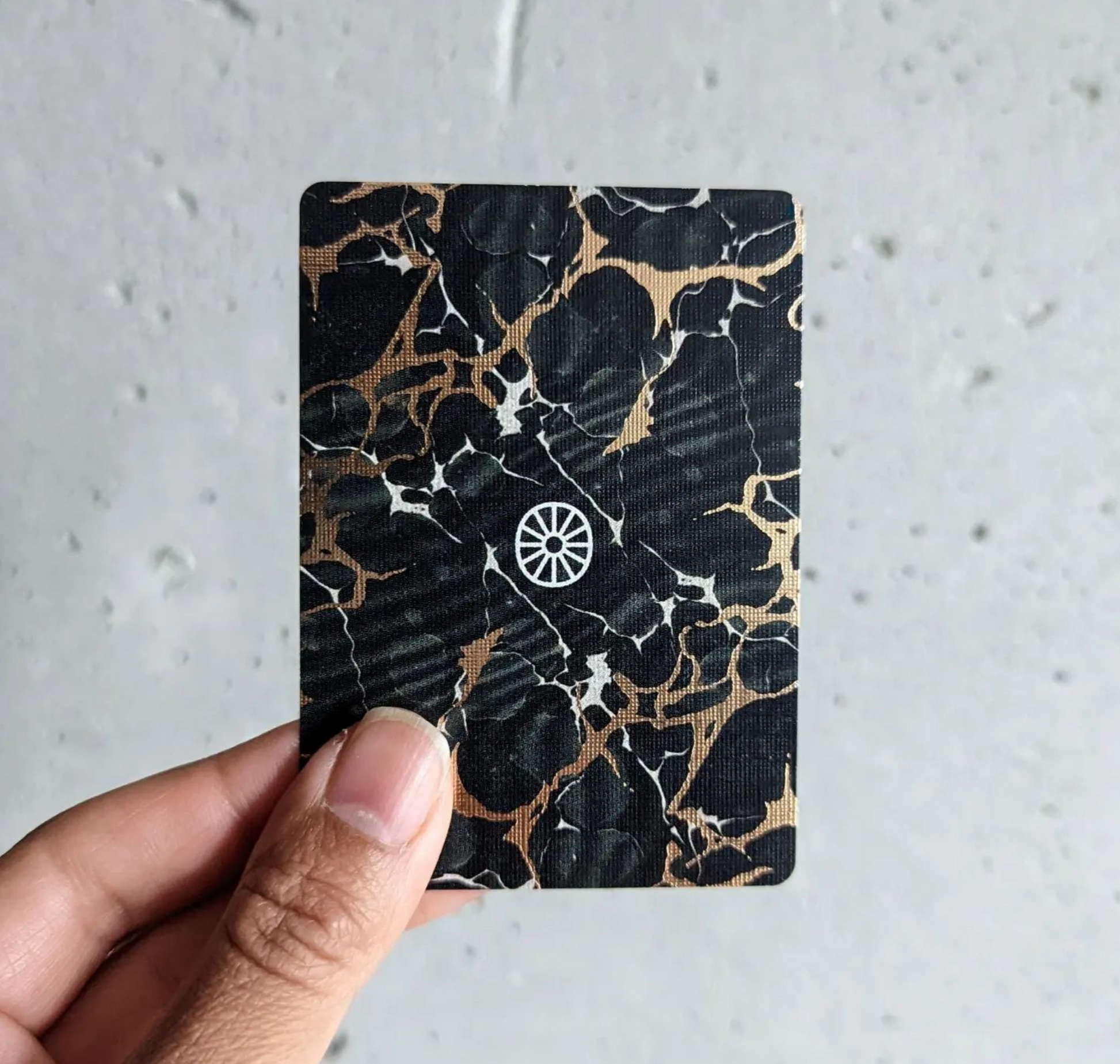 MetalLuxe foilcard backs inspired by antique marbled endpapers
