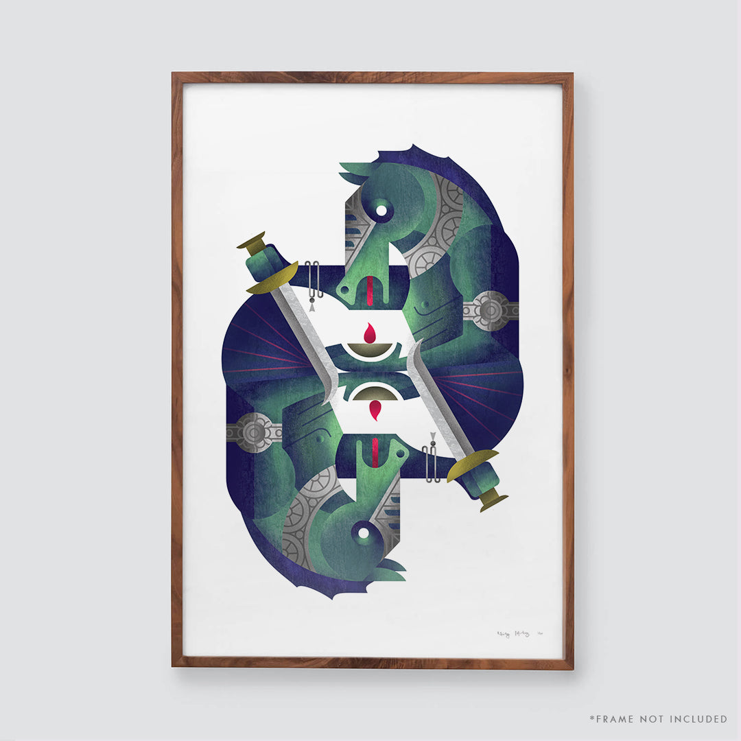 A large gallery-quality giclée print of Hayagriva from Forbidden Forest, an award-winning exhibition that reimagines mythological creatures from South Asian folklore.*